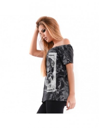 AEA Woman's Top Viennetta Devils Skull Pact Solid Black-White