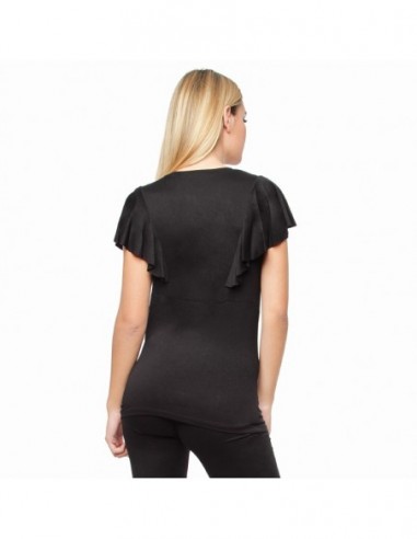 AEA Woman's Top Xenia "Embroided Flowers" Solid Black