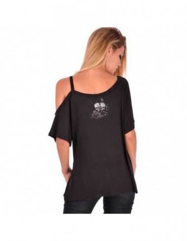 AEA Woman's Top Viennetta Devils Skull Pact Solid Black-White