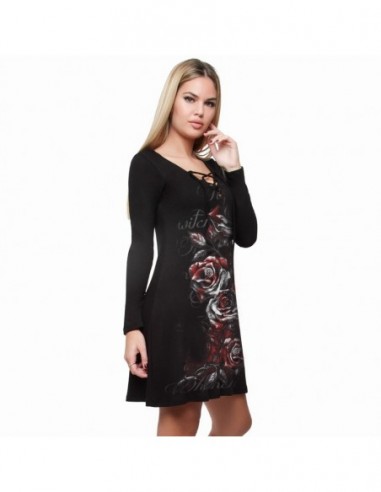 AEA Woman's Dress Princesa Bleeding Roses Solid Black