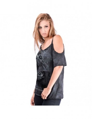 AEA Woman's Top Viennetta Devils Skull Pact Solid Black-White