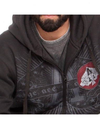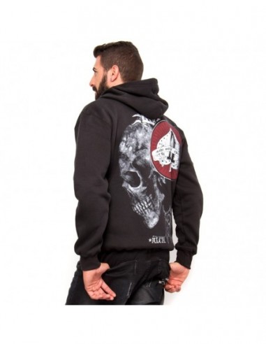 En el delantero y el trasero hay una serigrafia de calaveras con un logo del as de corazones.
